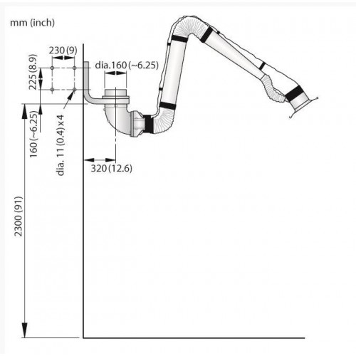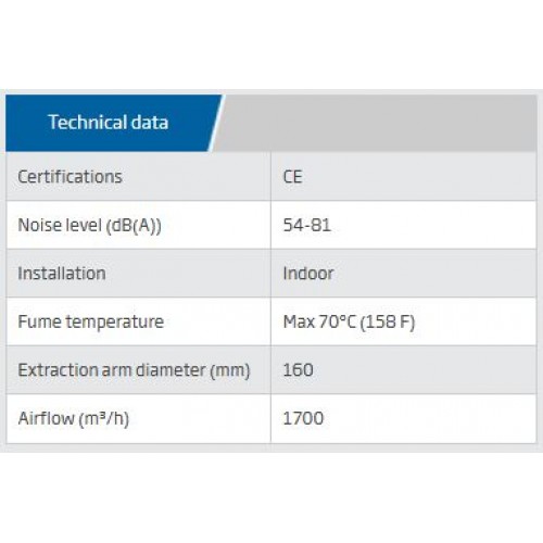 The NEX D dust extraction arm has concealed joints and a separate easy to mount hose. Enclosed support arm, separate hose and a stainless steel hood means the NEX arm requires little maintenance and is easy to clean.