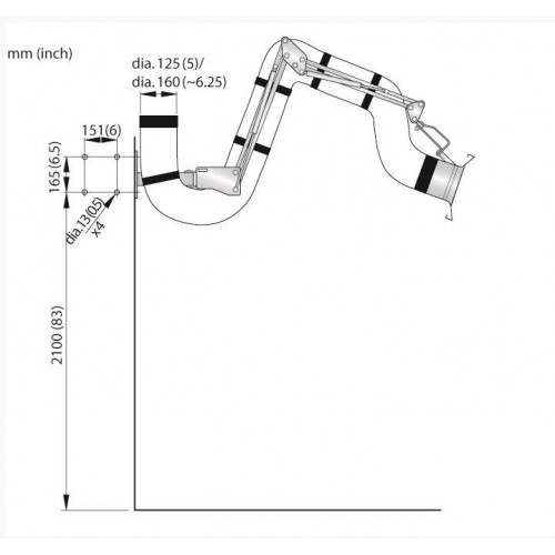 The NEX S arm fulfils all requirements for use in environments containing explosive dust and gas, and with extremely high hygienic demands. It has a double-earthed system and antistatic earthed ventilation hose that prevents static electricity and sparks. Open support arm system and hood of acid proofed polished stainless steel requires a minimum of maintenance and makes it easy to clean. The NEX S is not marked with the EX symbol since it does not fall under the scope of the directive 2014/34/EU. Even if it does not have the EX marking, it is highly suitable for use in zones 1/21, 2/22 according to ATEX-work directive 1999/92/EC. The arm is double-earthed, by the helix in the hose and through the arm system. The hose is made of antistatic Polyurethane.
