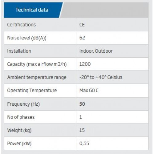 Note! The fan must not be used in an environment with danger of explosion or for transport of inflammable or explosive gases.
