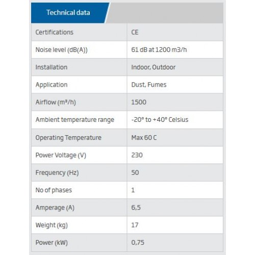 Designed for use with Nederman extraction products. This versatile extraction fan is suitable for many extraction purposes. N-Series fans can be mounted to a wall, or used for mobile applications with a stand.