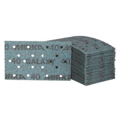 The ceramic grains of the Galaxy are engineered not to dull, as once the edge of the abrasive grain breaks off it simply forms new edges, making it possible for the Galaxy to continue cutting – from edge to edge. The self-sharpening ceramic grains allow for a winning combination of long life, fast cut and easy polishability. Thanks to the optimized Multifit hole configuration, the abrasive is always correctly placed on any machine without the need to specifically align it. At its core, the Mirka Galaxy is a multi purpose product, suitable for the sanding of both soft and hard materials as well as various substrates. Superb edge wear resistance, excellent clogging resistance, dust repellent coating, and optimal dust extraction - the Mirka Galaxy serve well in the automotive sector, in vehicle manufacturing, collision repair, marine production as well as in the wood sector.
